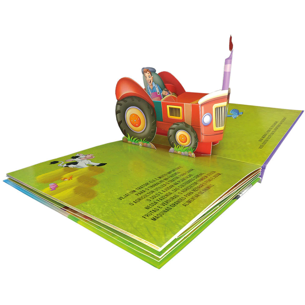 O livro apresenta elementos da vida no campo de forma lúdica, educativa e visualmente impactante. As crianças aprendem sobre os animais da fazenda, suas rotinas e sons, despertando curiosidade e imaginação enquanto se divertem com a magia das estruturas tridimensionais.